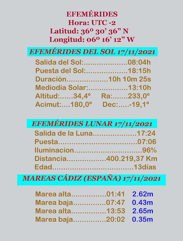 Nota: Días 29, 30 y 31/10/ y 01/02/11/2021 no se ha realizado observación solar meteorología adversa (nublado y Lluvia).
