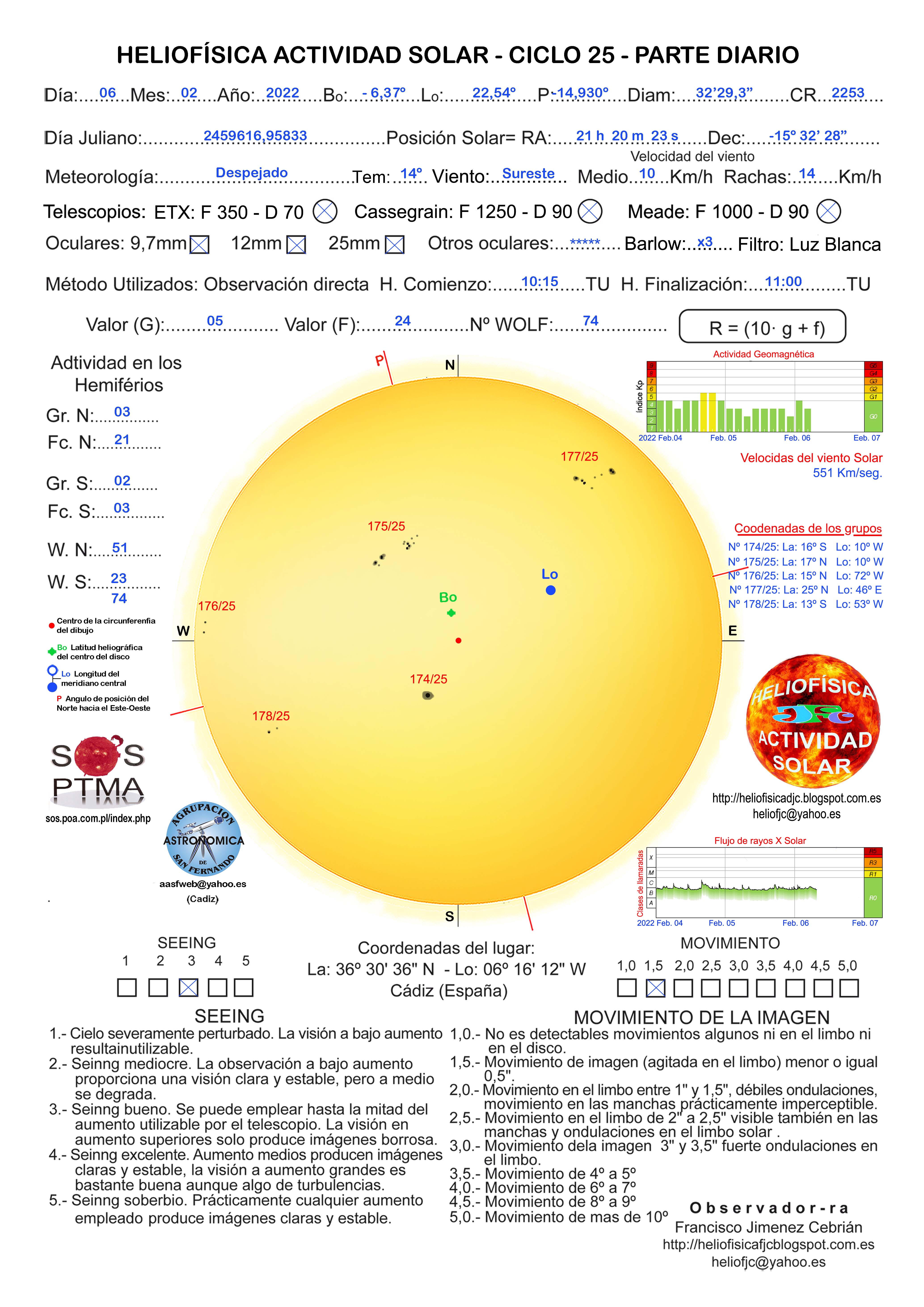 Nota: Días 16 - 17 y 18/02/2022 no se ha realizado observación solar climatología adversa (16 y 17 ausente 18 Nublado).